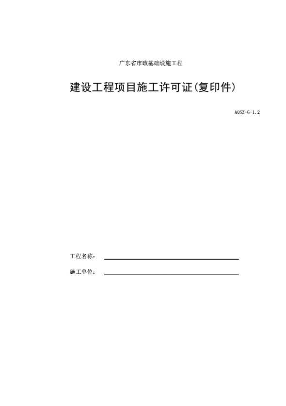 表格名称:AQSZ-G-1.2 建设工程项目施工许可证(复印件)