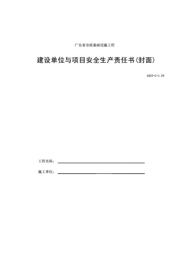 表格名称:AQSZ-G-1.28 建设单位与项目安全生产责任书(封面)
