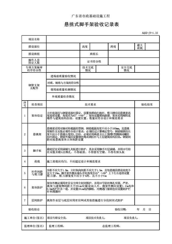 AQSZ-JY-1.33 悬挑式脚手架验收记录表