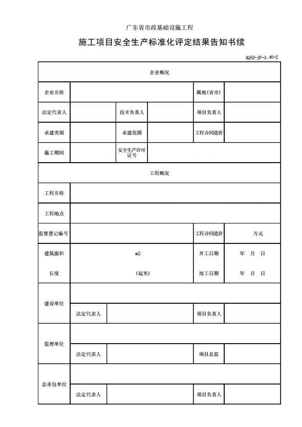 AQSZ-JP-3.46-2 施工项目安全生产标准化评定结果告知书续