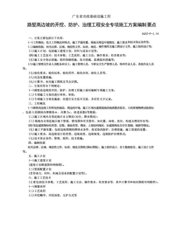 AQSZ-P-1.16 路堑高边坡的开挖、防护、治理工程安全专项施工方案编制要点