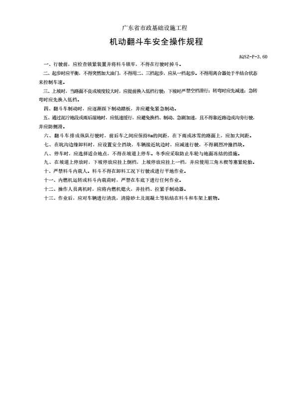 AQSZ-P-3.60 机动翻斗车安全操作规程