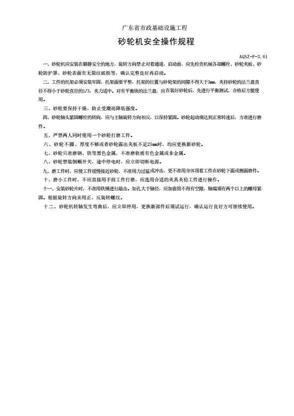表格名称:AQSZ-P-3.61 砂轮机安全操作规程