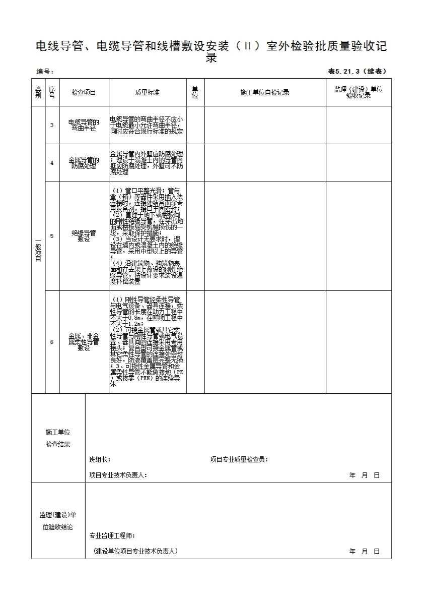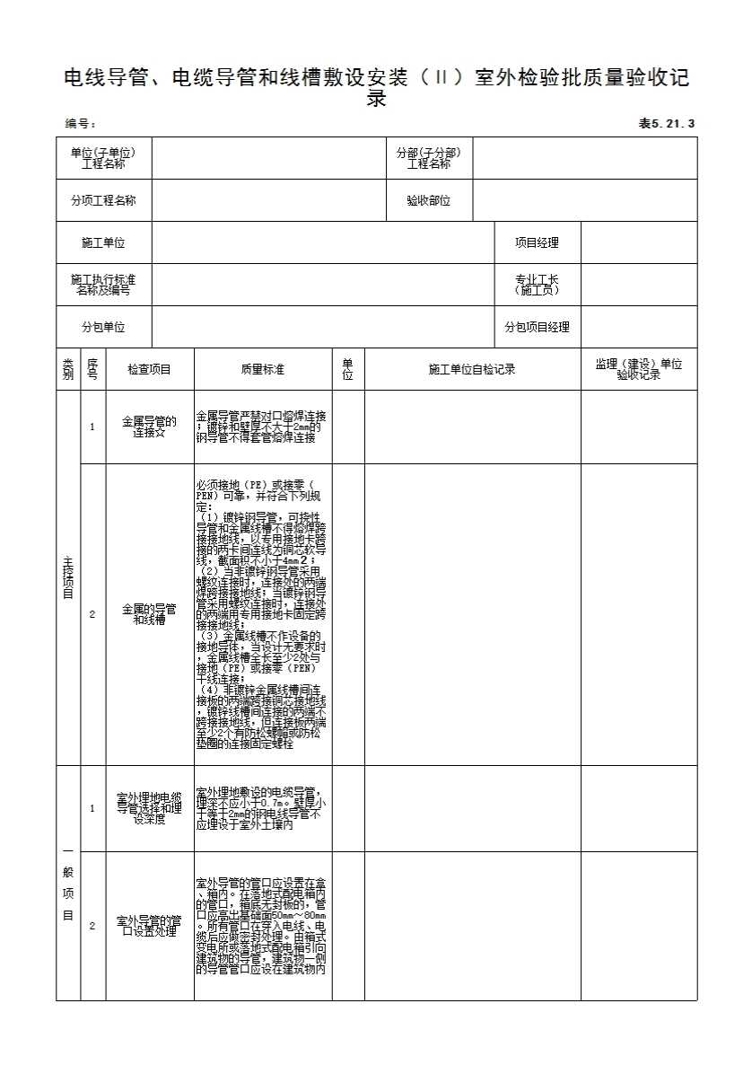 表格名称:5.21.3 电线导管、电缆导管和线槽敷设安装(Ⅱ)室外检验批质量验收记录