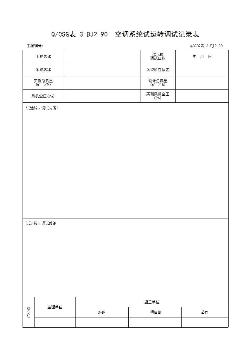 QCSG 表 3-BJ2-90 空调系统试运转调试记录表