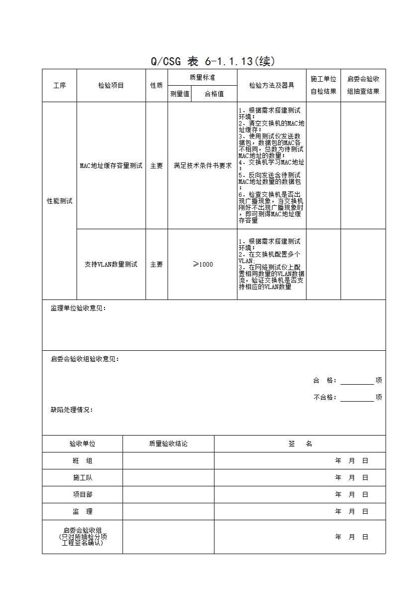 表格名称:QCSG 表 6-1.1.13 二次安防交换机 分项工程质量验收记录表