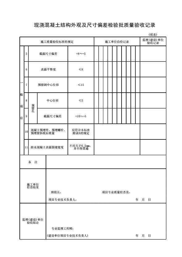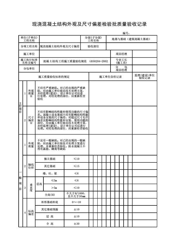 表格名称:现浇混凝土结构外观及尺寸偏差检验批质量验收记录
