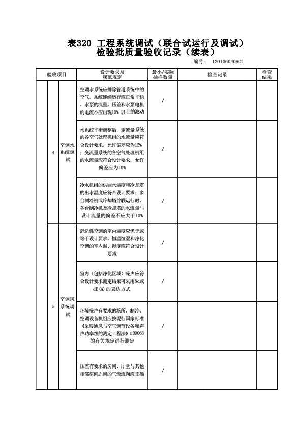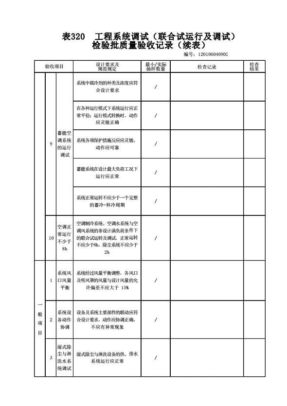 表格名称:120106040902 工程系统调试(联合试运行及调试)检验批质量验收记录