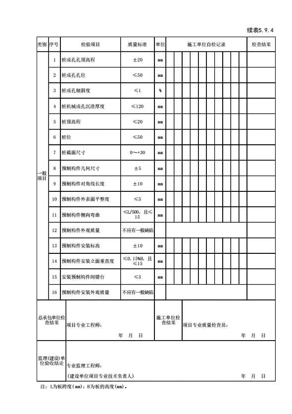 表格名称:表5.9.4 桩板挡墙边坡检验批质量验收记录