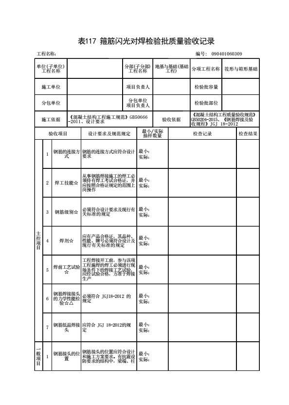 表格名称:090401060309 箍筋闪光对焊检验批质量验收记录