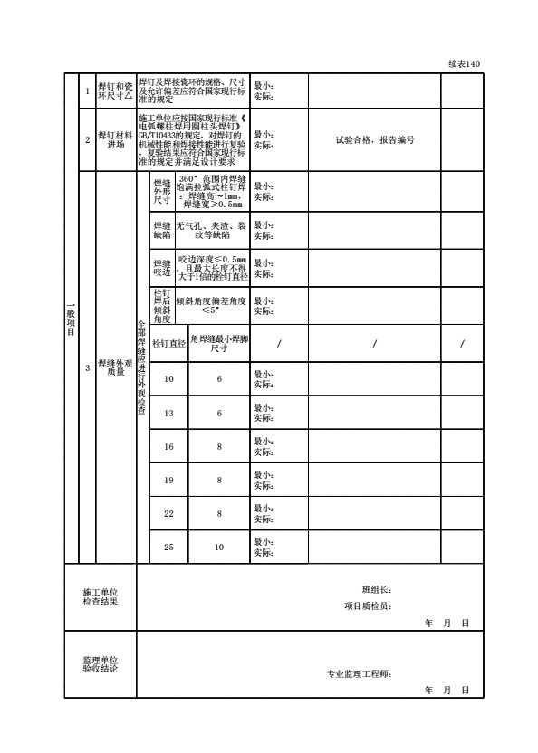 表格名称:100202030102 焊钉焊接工程检验批质量验收记录
