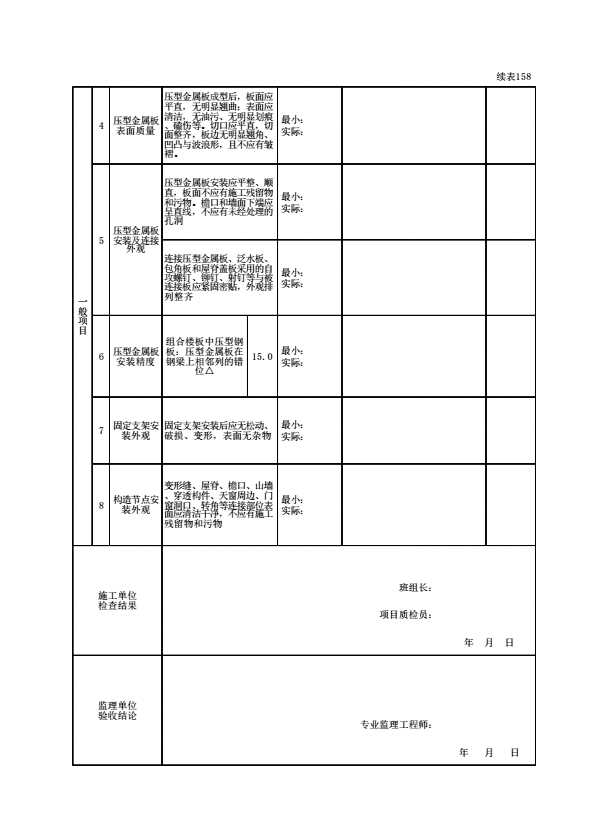 表格名称:130203020701 压型金属板(楼层板)检验批质量验收记录