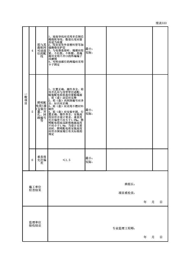 表格名称:140207030101 动力、照明配电箱(盘)安装质量标准和检验方法