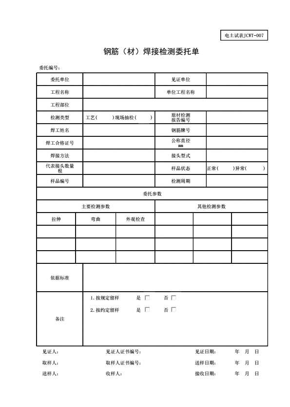 电土试表JCWT-007 钢筋(材)焊接检测委托单