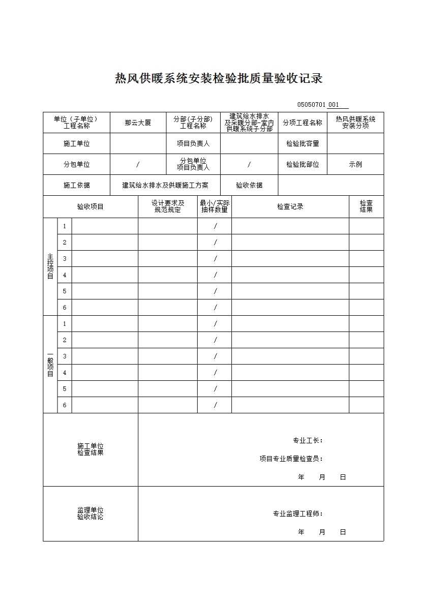 表格名称:05050701_热风供暖系统安装检验批质量验收记录