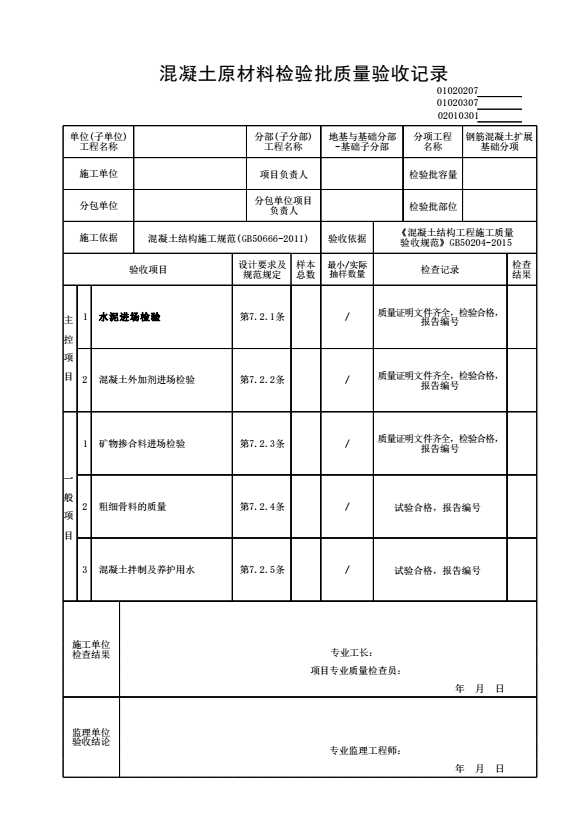 7.2.3 混凝土用矿物掺合料进场时,应对其品种、技术指标、出厂日期等进行检查,并应对矿物掺合料的相关技术指标进行检验,检验结果应符合国家现行有关标准的规定。