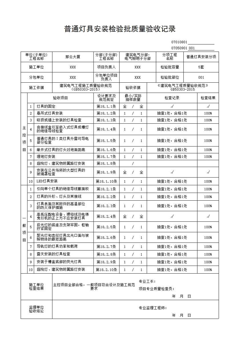 检查数量:第1款按每检验批的灯具数量抽查5%,且不得少于1套;第2款全数检查。