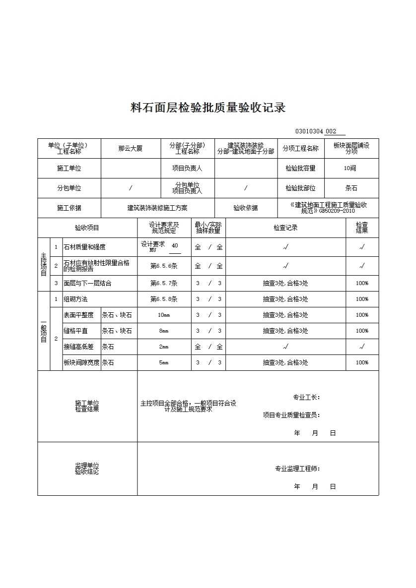 大理石面层、花岗石面层、人造石面层、金属板面层