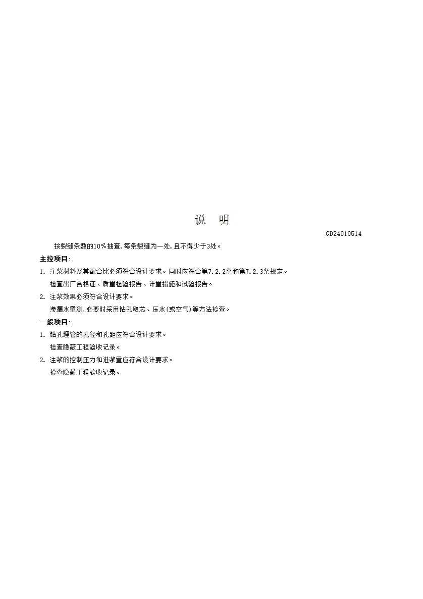 衬砌裂缝注浆工程检验批质量验收记录表GD24010514
