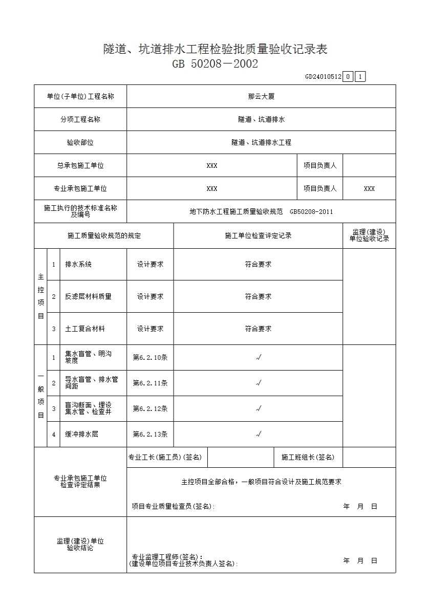 本表适用于贴壁式、复合式、离壁式衬砌的隧道排水、坑道排水检验批质量验收。