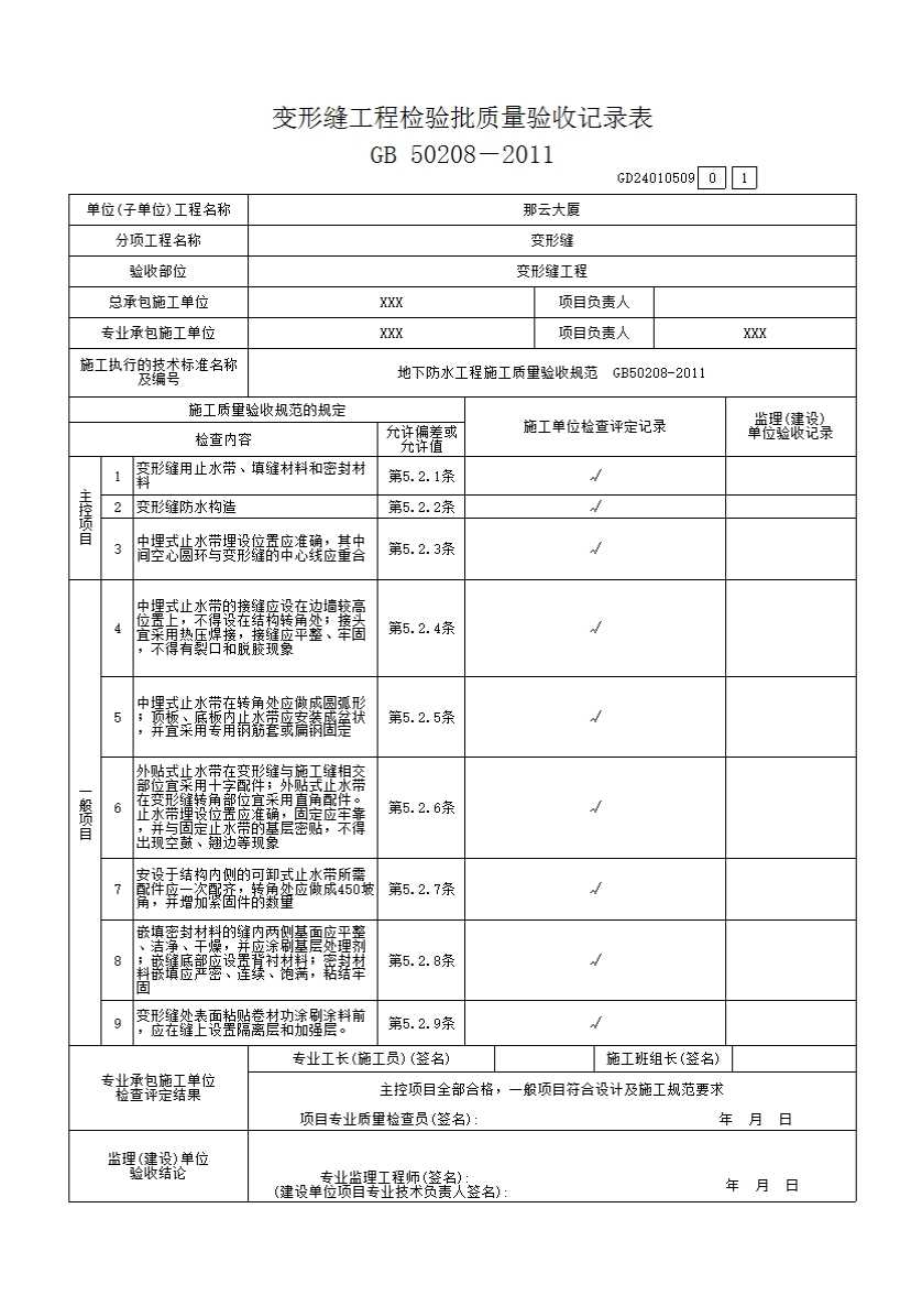 5.2.1 变形缝用止水带、填缝材料和密封材料必须符合设计要求。