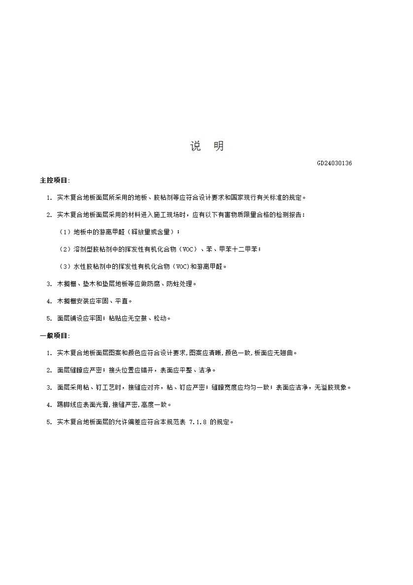 7.3.7 实木复合地板面层采用的材料进入施工现场时,应有以下有害物质限量合格的检测报告: