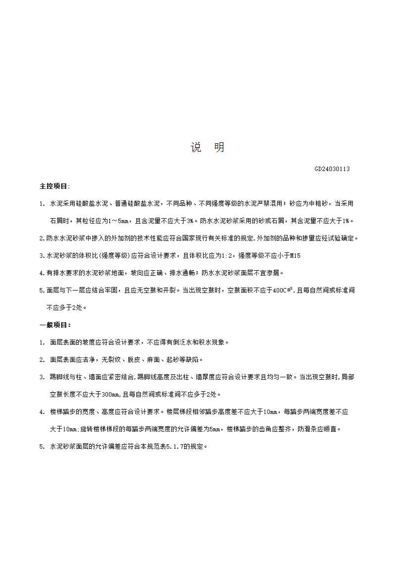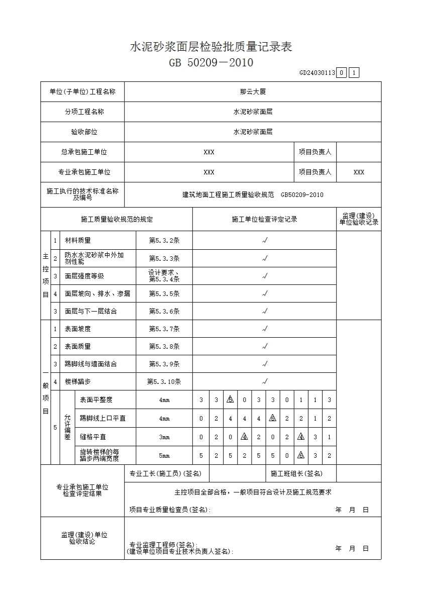 水泥砂浆面层检验批质量记录表GD24030113