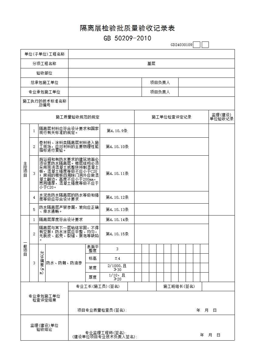 4.10.16 隔离层表面的允许偏差应符合本规范表4.1.7的规定。