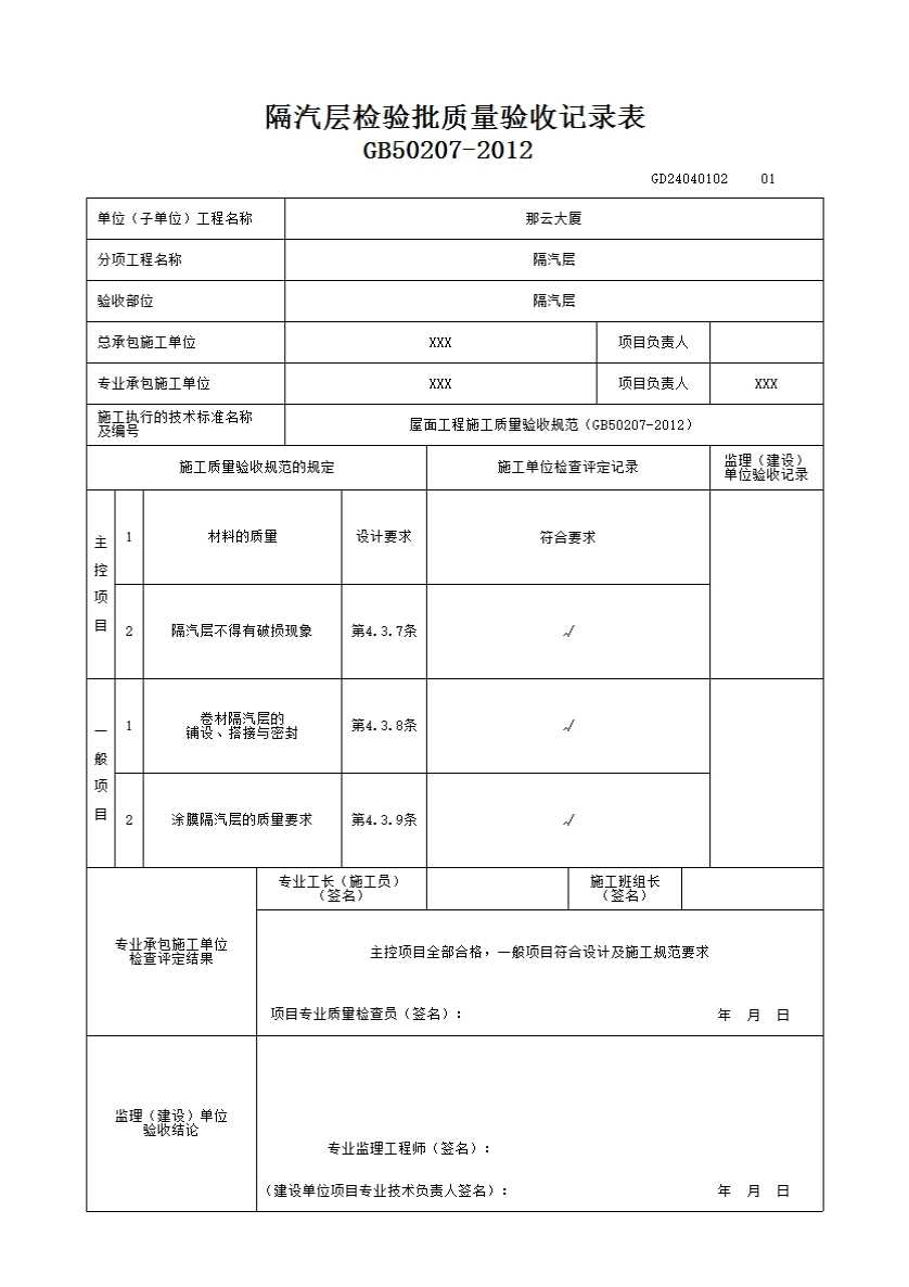 4.3.6 隔汽层所用材料的质量,应符合设计要求。 检验方法:检查出厂合格证、质量检验报告和进场检验报告。 4.3.7 隔汽层不得有破损现象。 检验方法:观察检查。