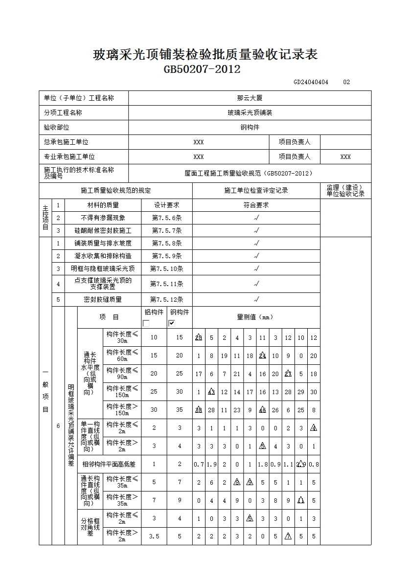 7.5.8 玻璃采光顶铺装应平整、顺直;排水坡度应符合设计要求。