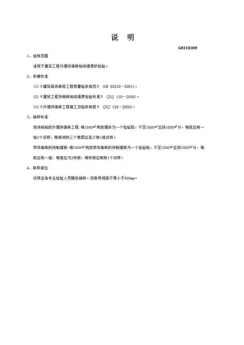 外墙饰面砖粘结强度检验报告GD210309