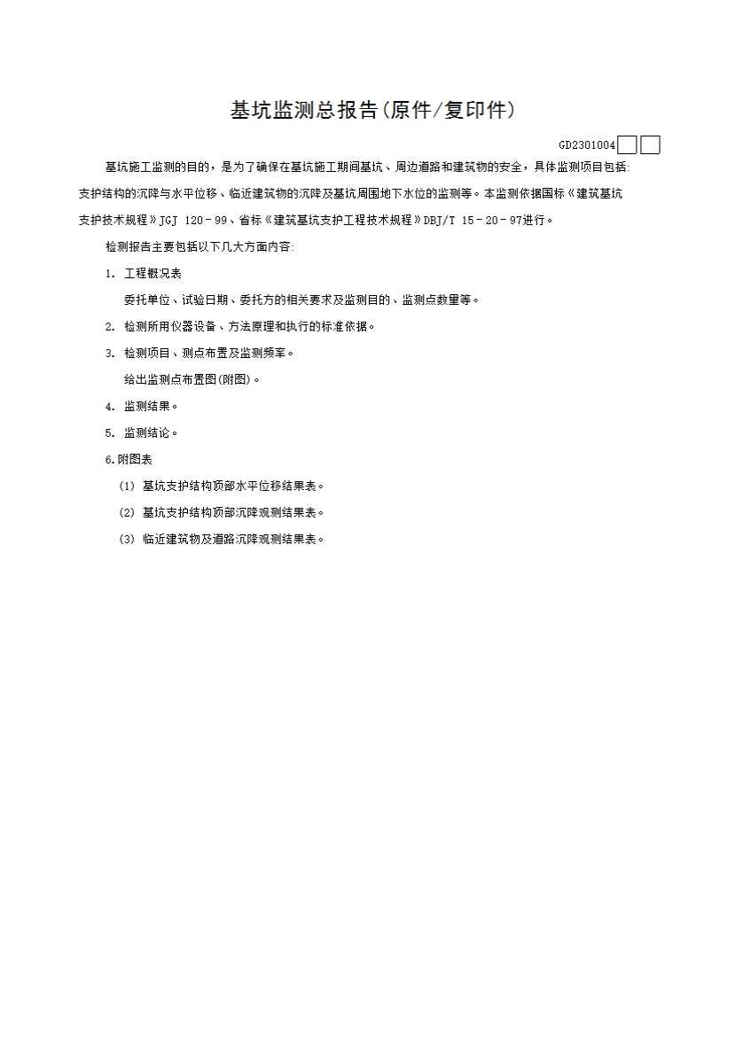 表格名称:基坑监测总报告(原件/复印件)GD2301004