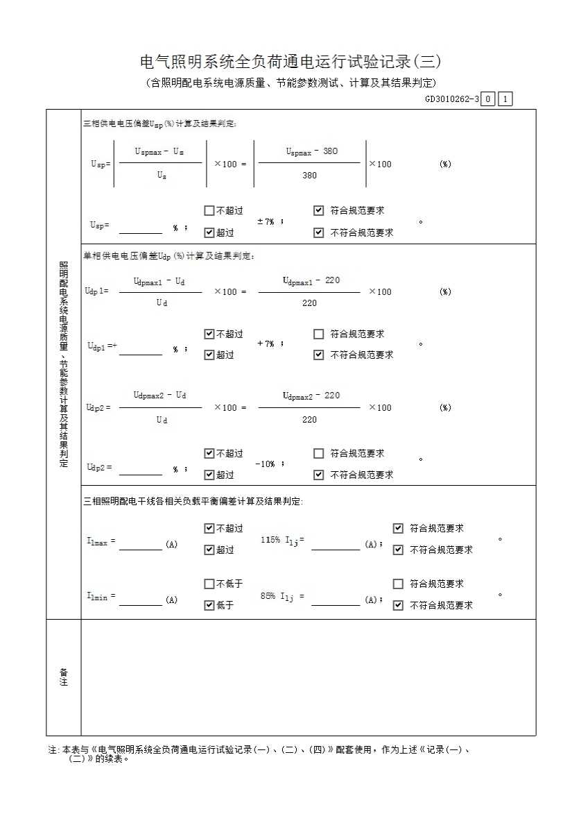 表格名称:电气照明系统全负荷通电运行试验记录(三)GD3010262