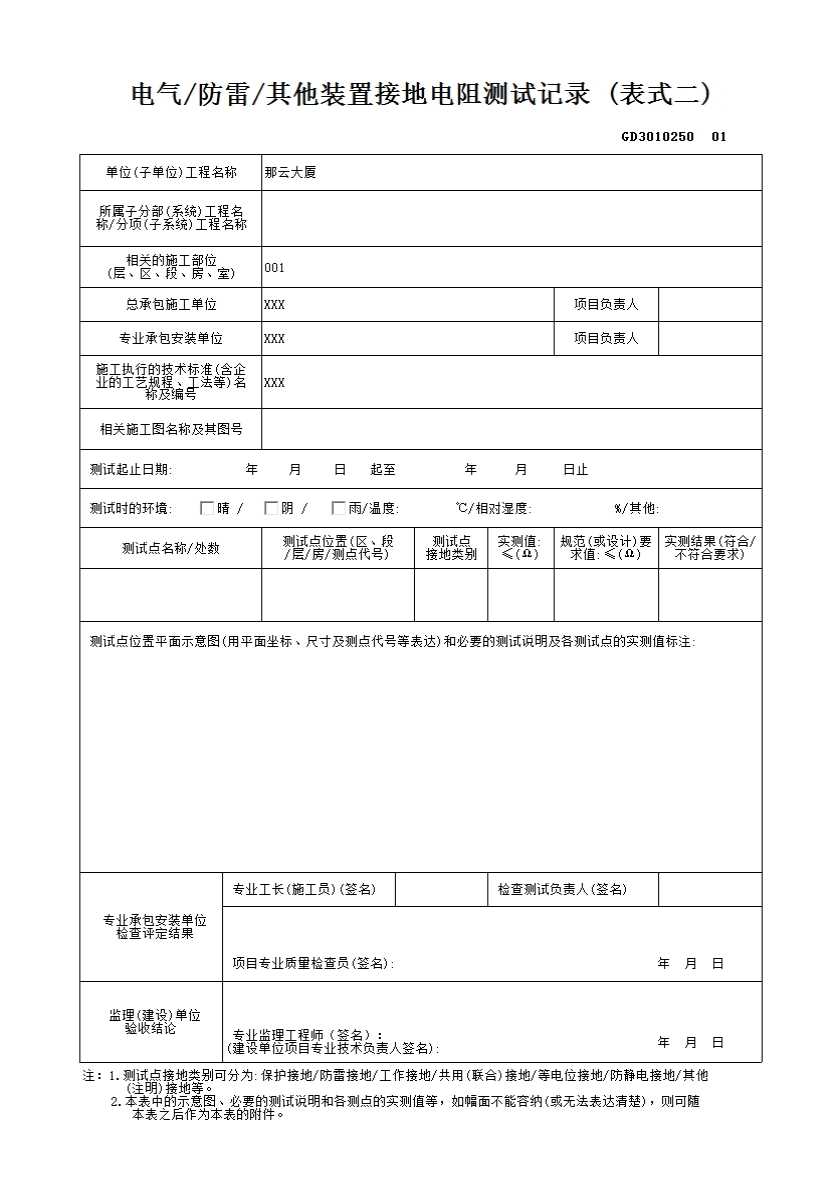 电气/防雷/其他装置接地电阻测试记录 (表式二)GD3010250