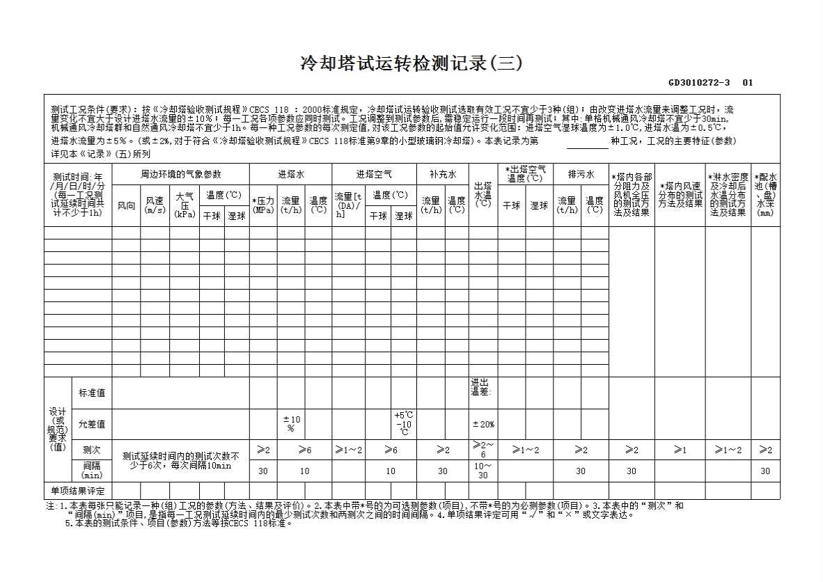 表格名称:冷却塔试运转检测记录(三)GD3010272-3