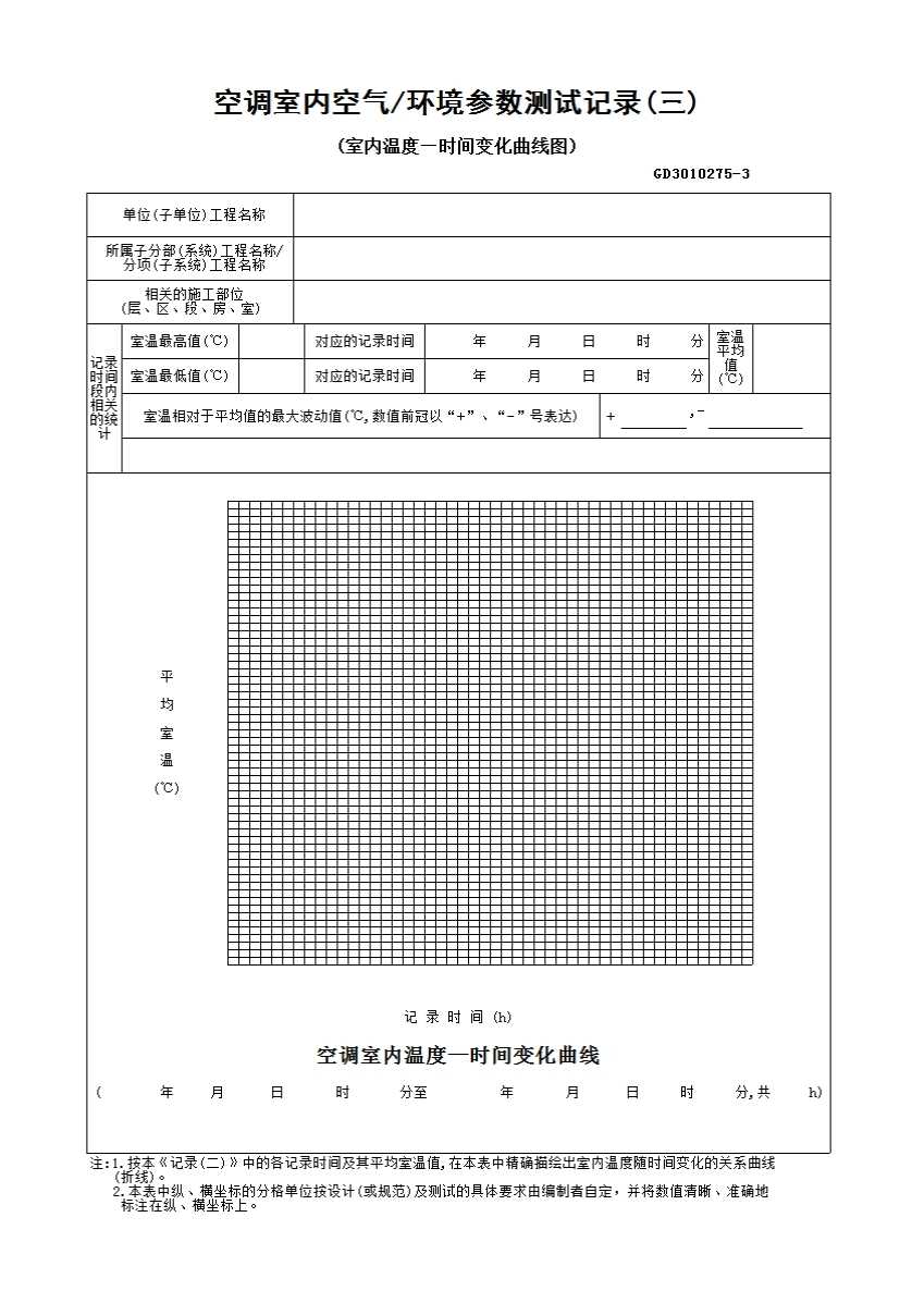 表格名称:空调室内空气/环境参数测试记录(三)GD3010275-3