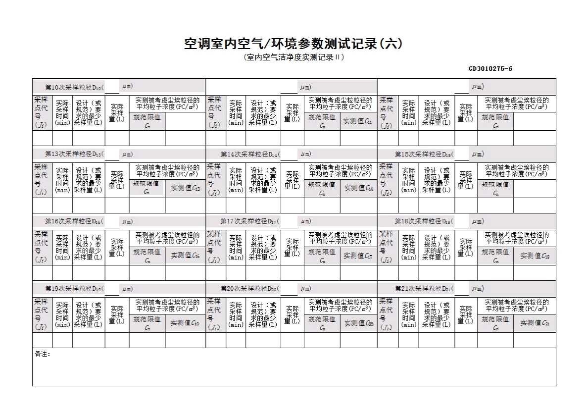 表格名称:空调室内空气/环境参数测试记录(六)GD3010275-6