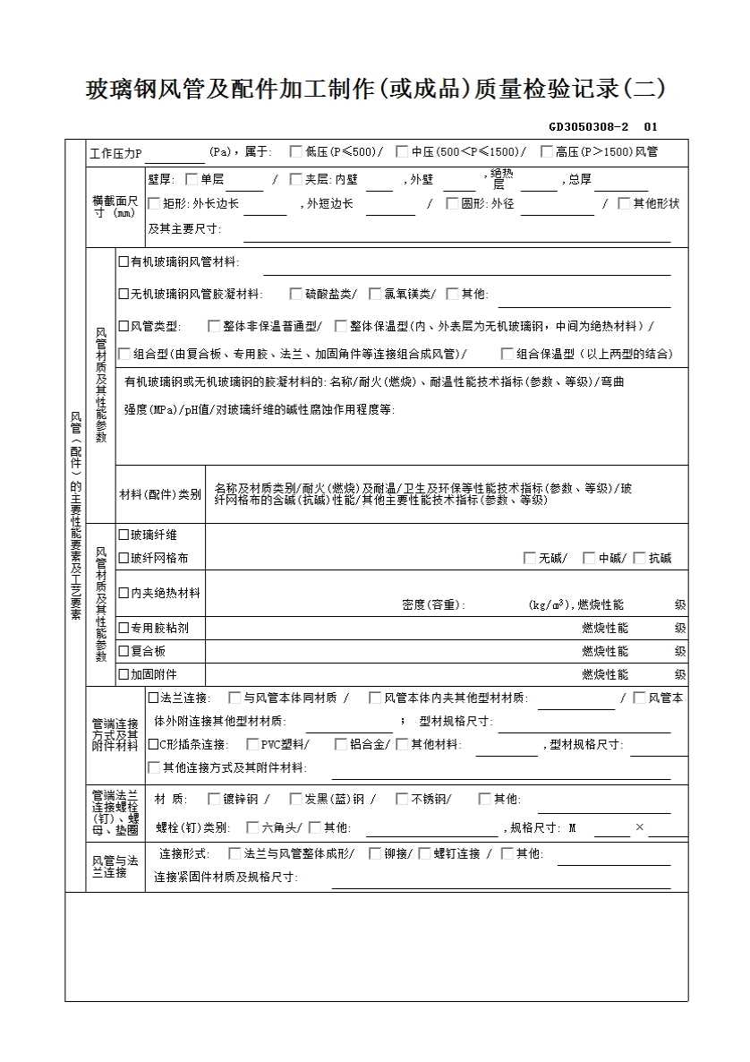各型、各材质风管及配件加工制作(或成品)质量检测记录检验记录GD3050308