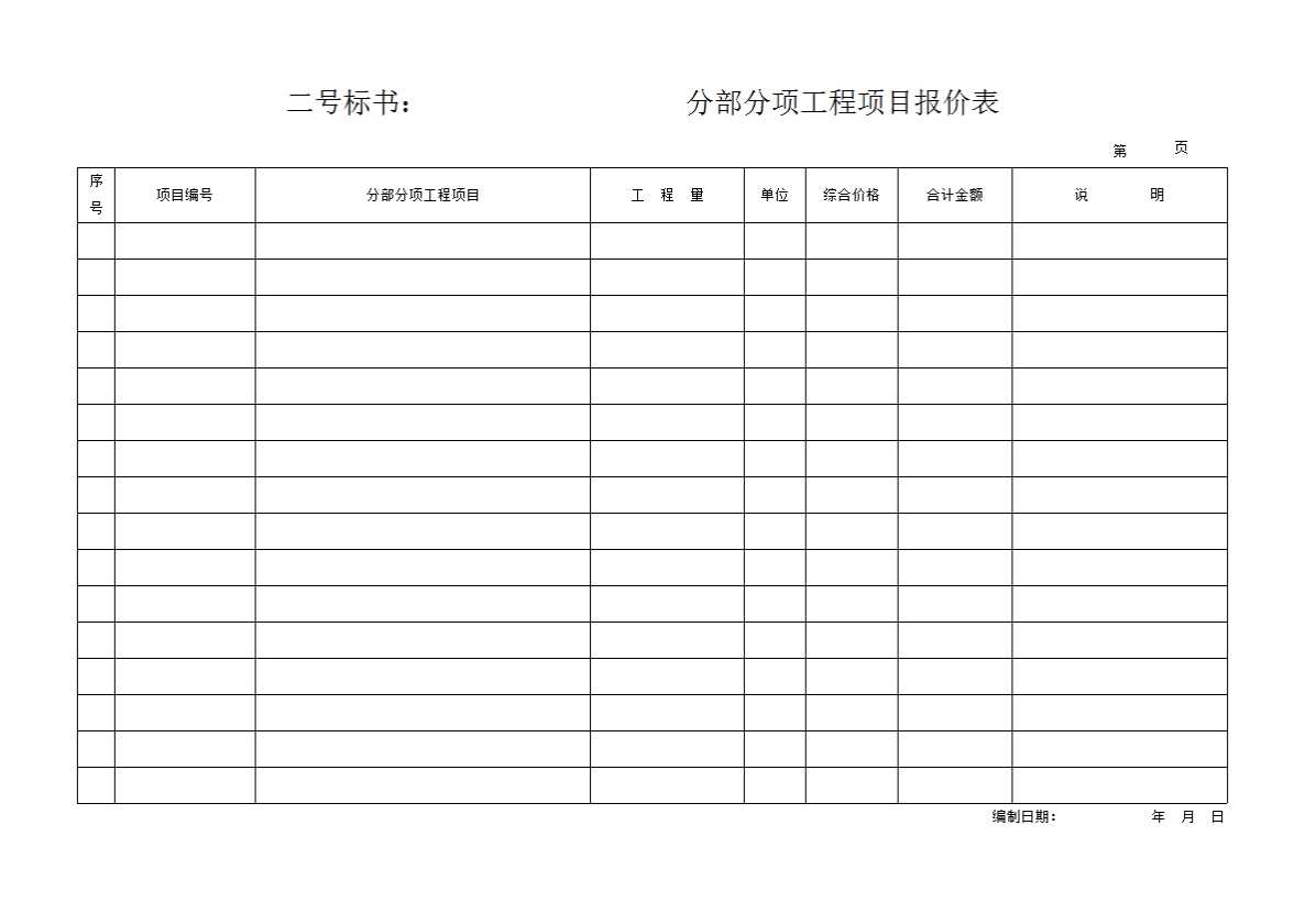 表格名称:二号标书:分部分项工程项目报价表