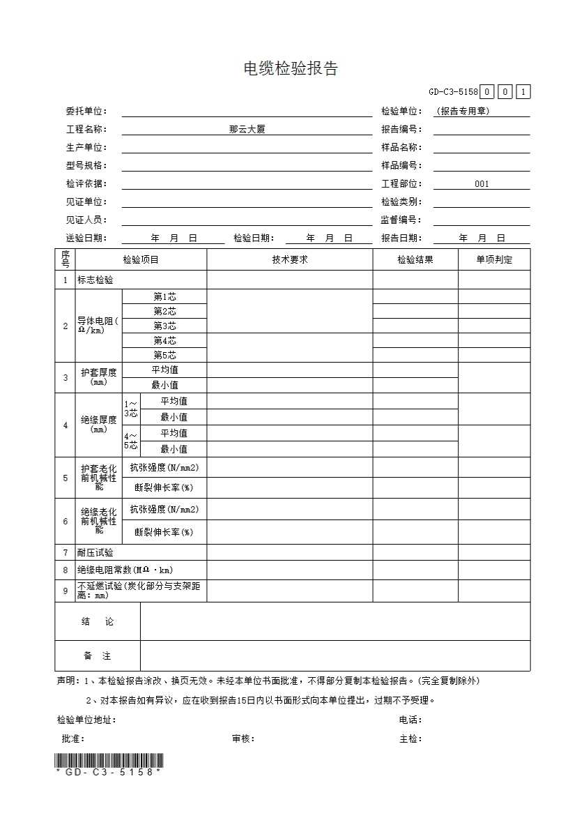 表格名称:5.1.58、电缆检验报告