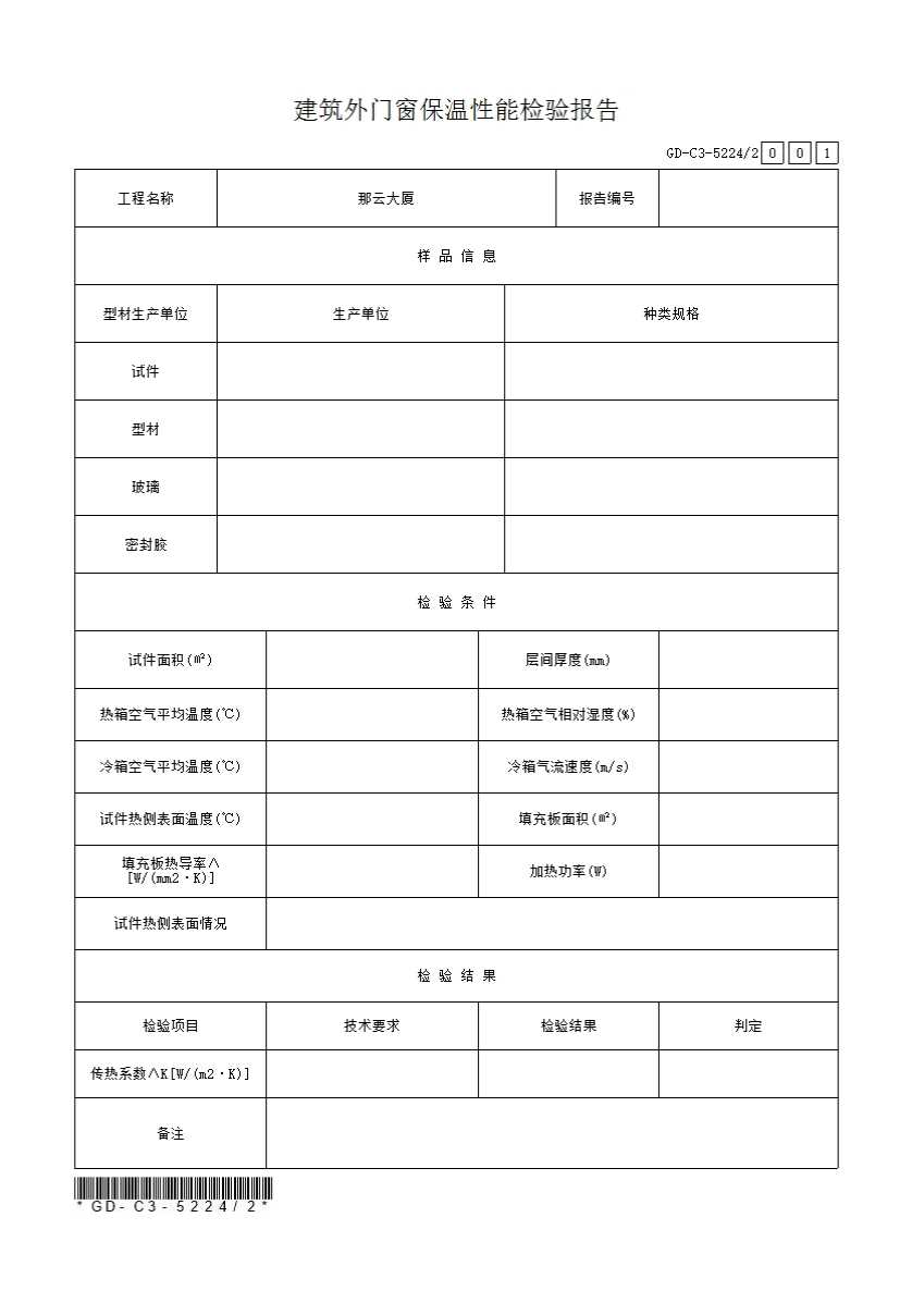 表格名称:5.2.24、建筑外门窗保温性能检验报告