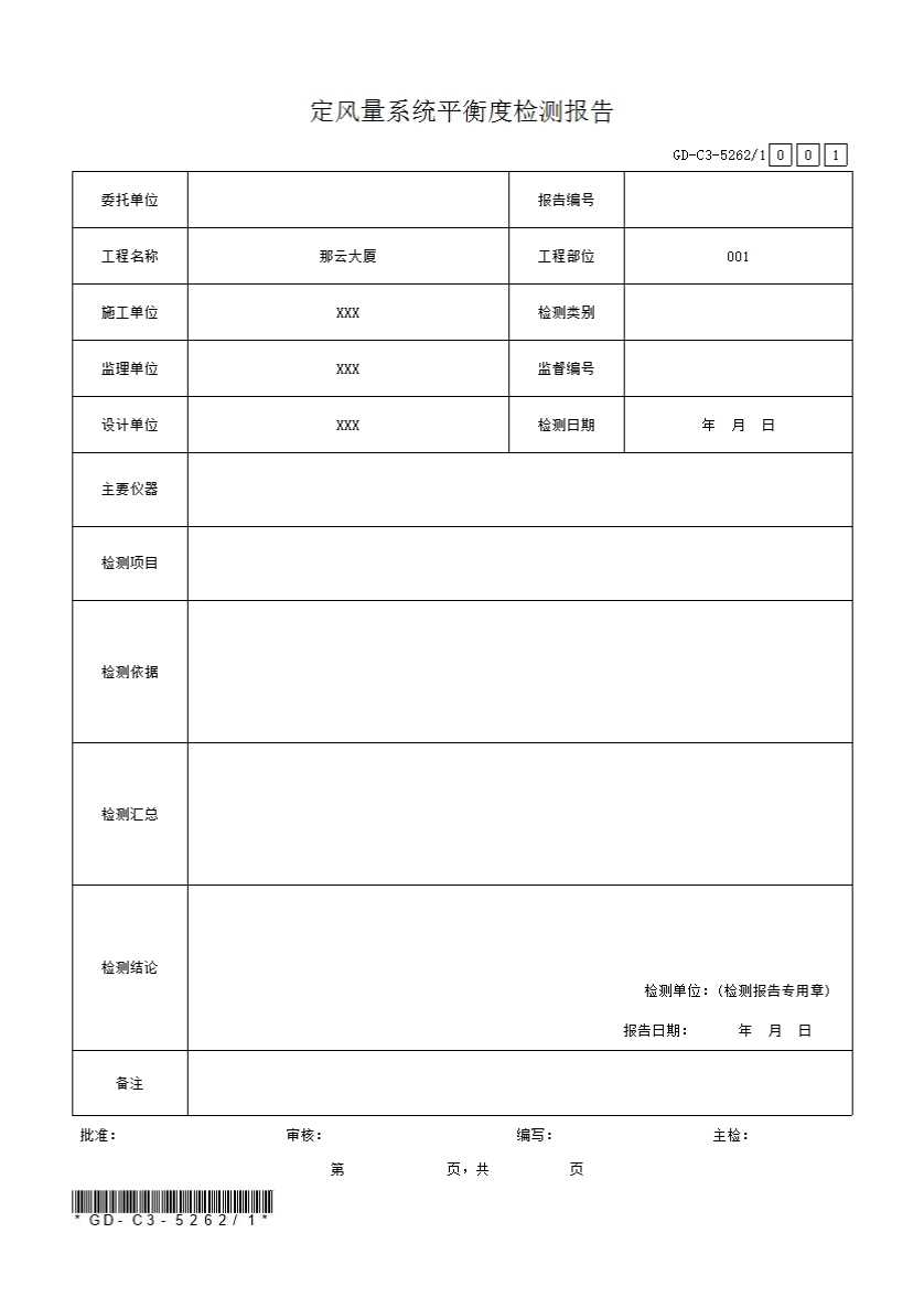 表格名称:5.2.62、定风量系统平衡度检测报告