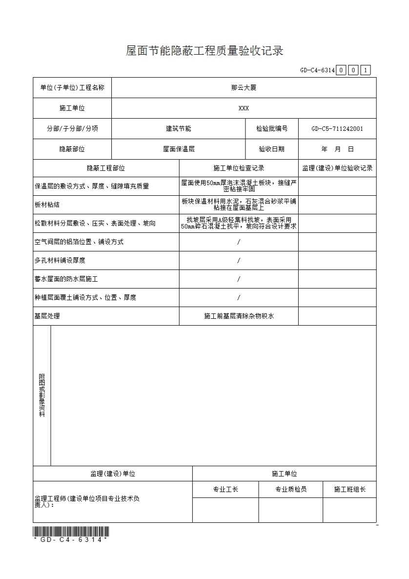 屋面节能隐蔽工程质量验收记录