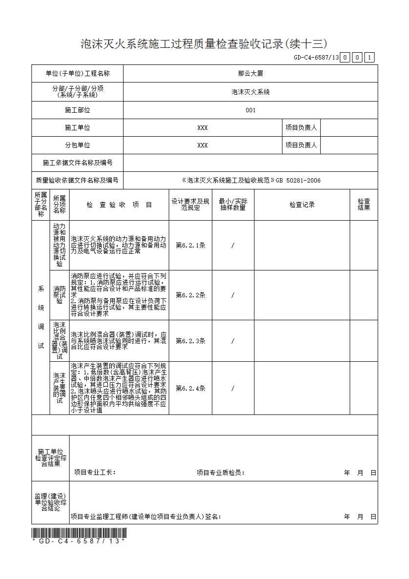 泡沫灭火系统施工过程质量检查验收记录(一)~(十六)
