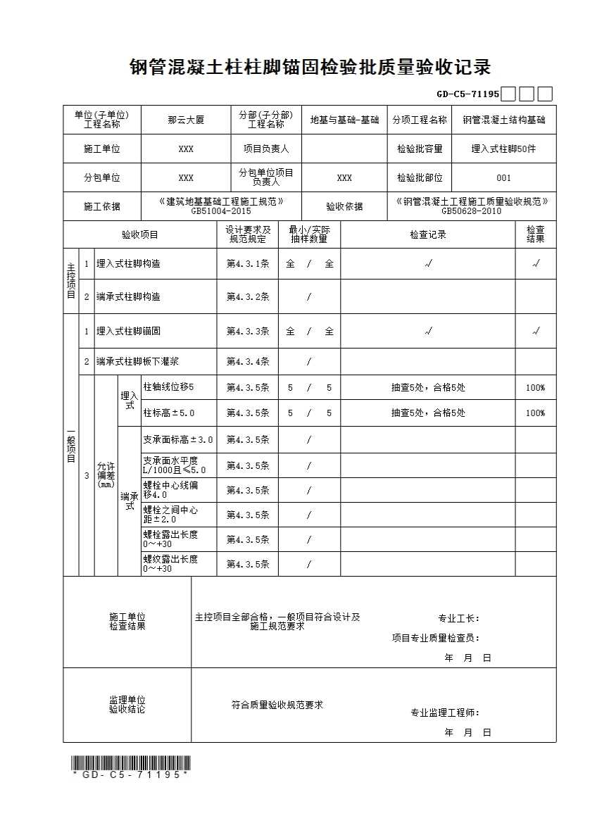 GD-C5-71195_钢管混凝土柱柱脚锚固检验批质量验收记录
