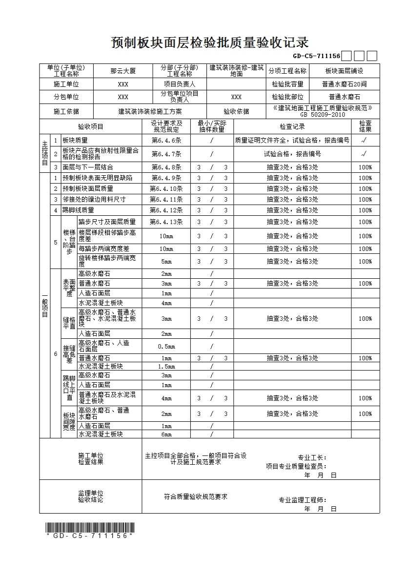 1.板块质量:应符合设计要求和国家现行有关标准的规定。