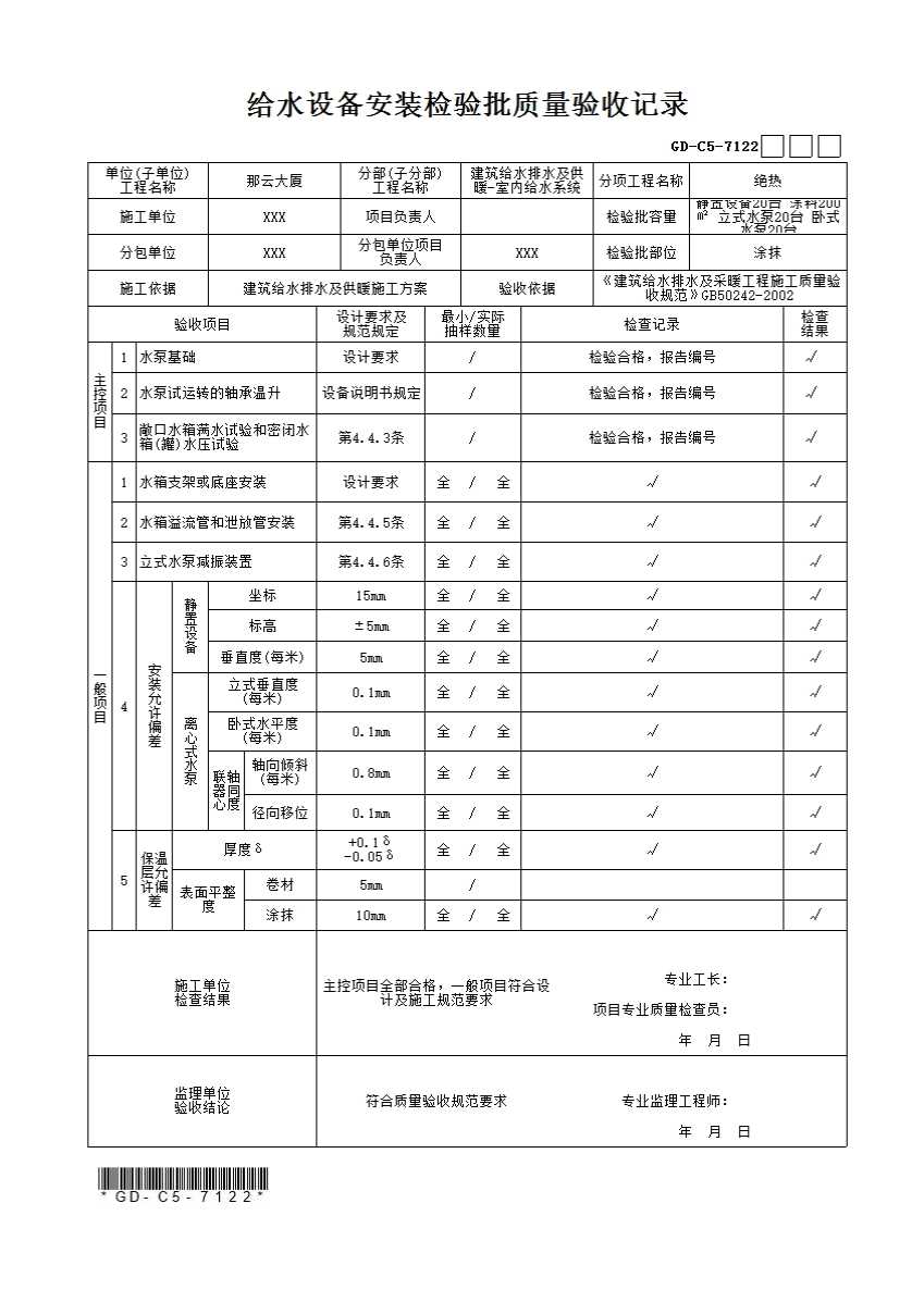 4.室内给水设备的安装:允许偏差应符合规范表4.4.7的规定。