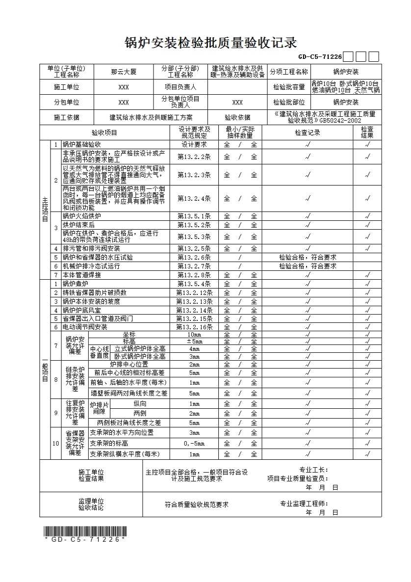 1.锅炉设备基础:允许偏差应符合规范表13.2.1规定。