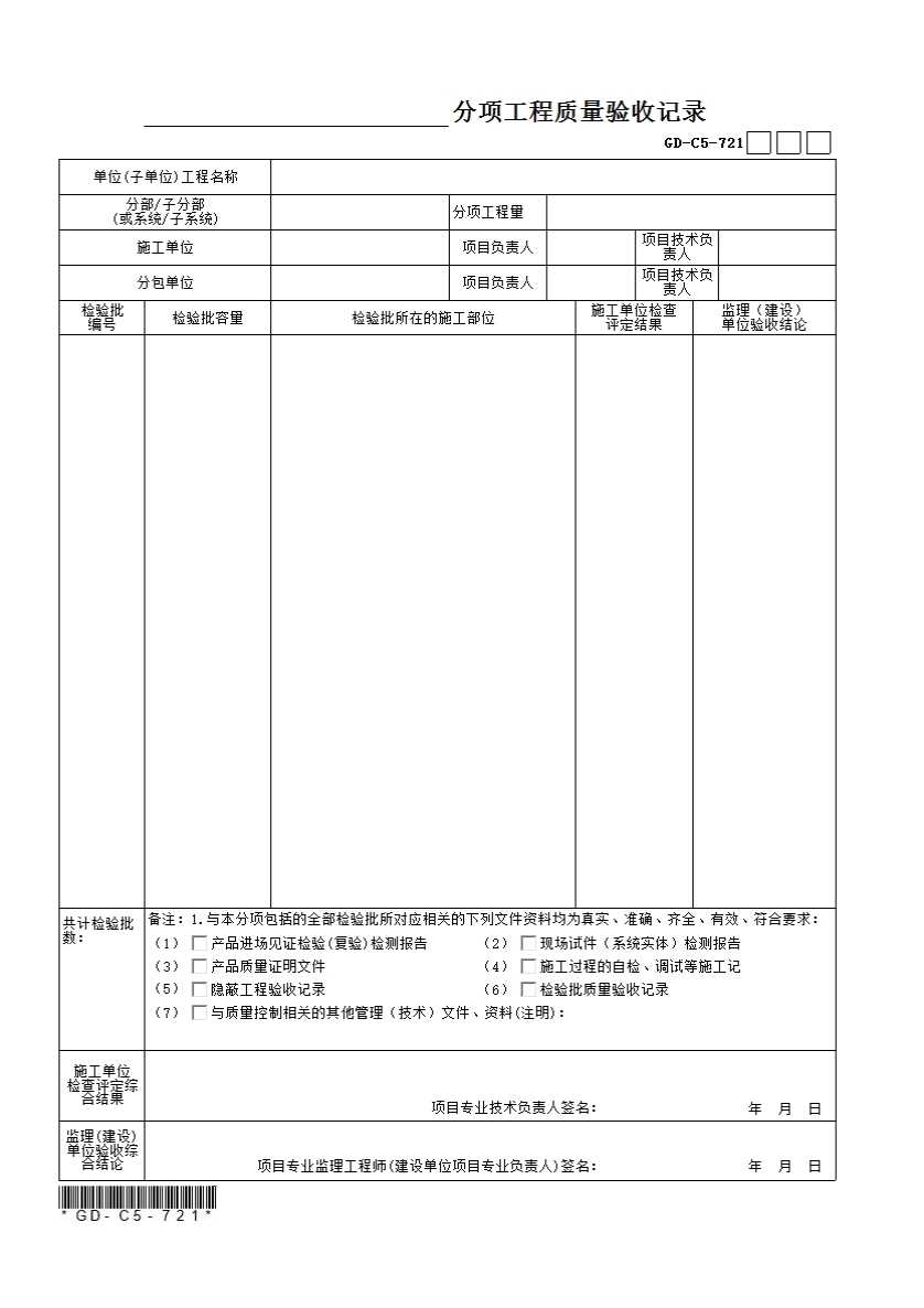 第七章 检验批、分项、分部(子分部)施工质量及分户验收用表(C5类表)