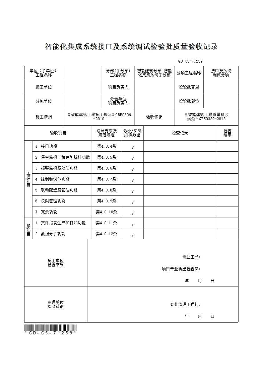 4.控制和调节功能:检测控制和调节功能时,应在服务器和客户端分别输入设置参数,调节和控制效果应符合设计要求。各被集成系统应全部检测,全部符合设计要求的应为检测合格。